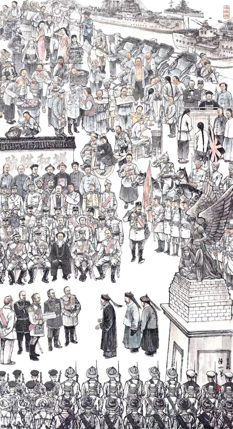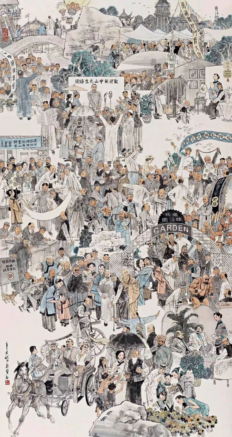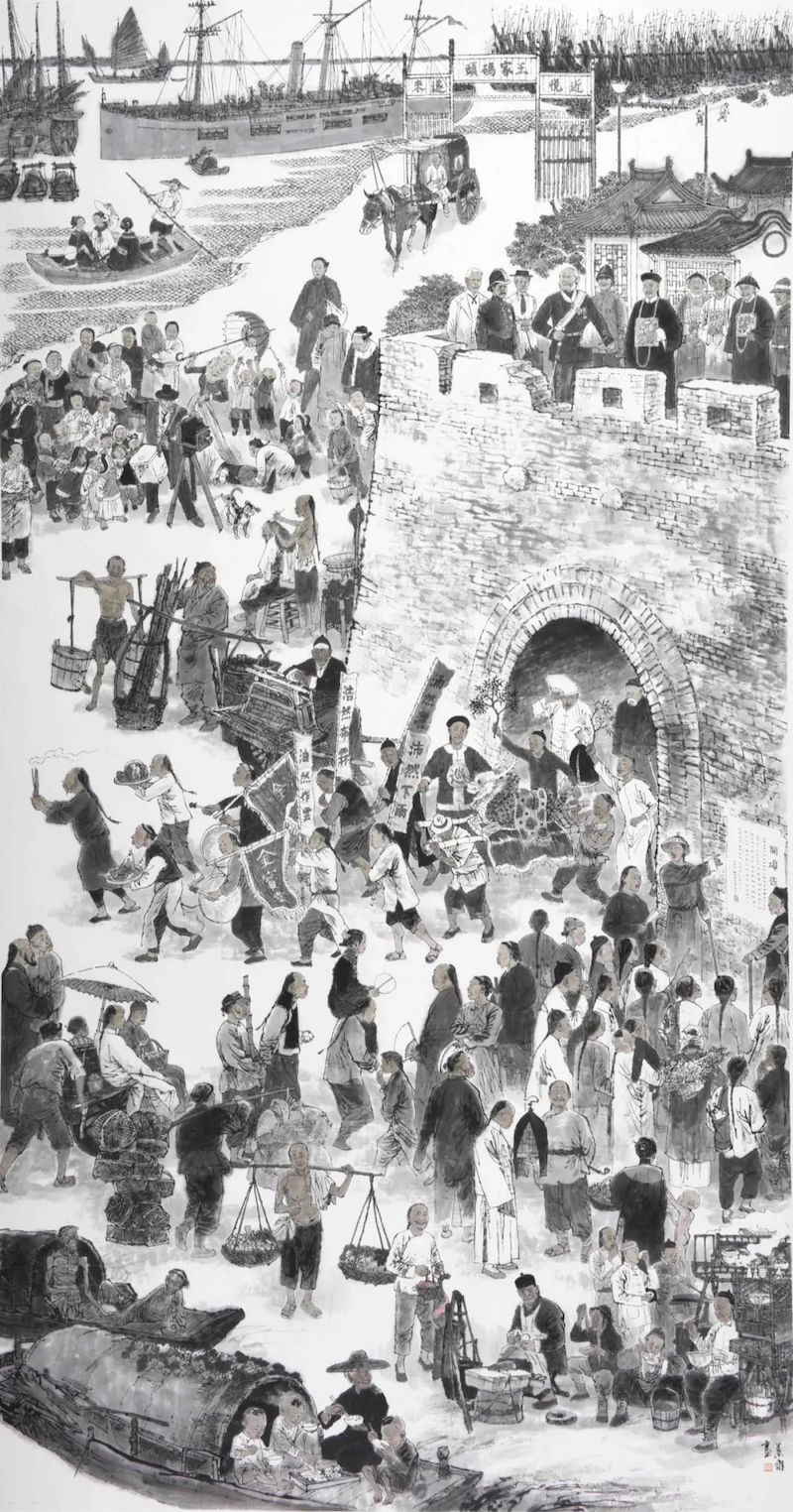 今年是上海开埠180周年。3月25日,“回眸——上海百年纪事人物画苑作品展”在上海外滩18号久事艺术空间展出,呈现了10余位艺术家的20件作品。艺术家们用画笔梳理和留驻上海百年的“历史回声”,他们的作品既包含重要的历史事件,也有市井百态。