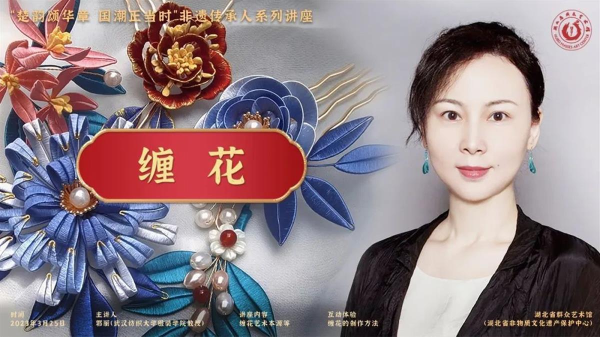 3月25日,湖北省群众艺术馆(湖北省非物质文化遗产保护中心)“楚韵颂华章 国潮正当时”非遗传承人系列讲座迎来《缠花》主题讲座。