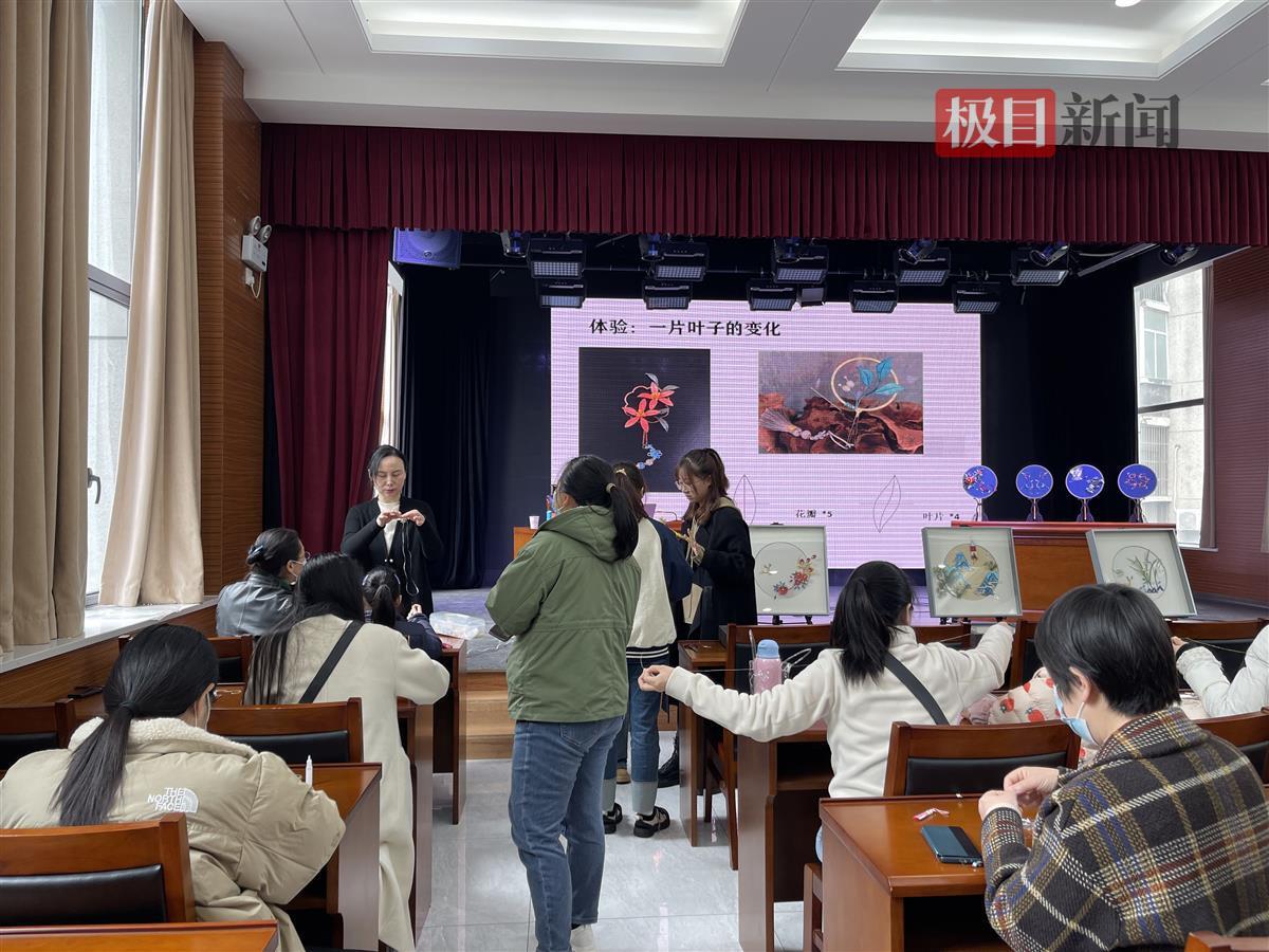 武汉纺织大学服装学院教授、缠花“守艺人”郭丽受邀来到湖北省群众艺术馆,围绕以上三个问题,带领现场数十位参与市民领略古老而时新的缠花魅力。讲座同时通过湖北文旅公服云平台进行直播,惠及万名观众。