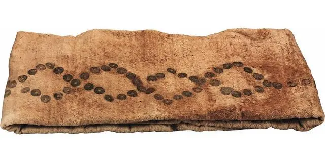 2.51米的长度,1.18米的宽度,1600克的重量,棉毯上面缝制着八十一枚开元通宝和北宋钱币排列成六个互相连接的菱形图案,寓意不详,但高氏过世时,享年81岁。