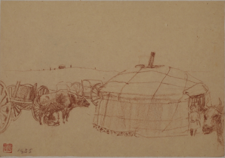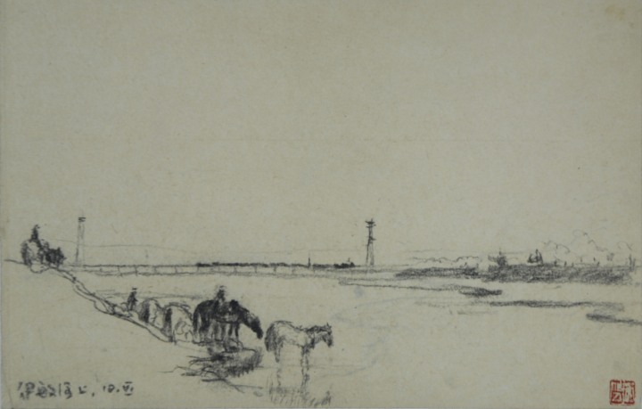 吴作人 伊敏河上 速写 17.3×27.2 1955年