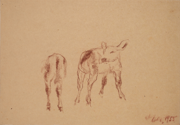 吴作人 牛犊 速写 18.9×27.1 1955年