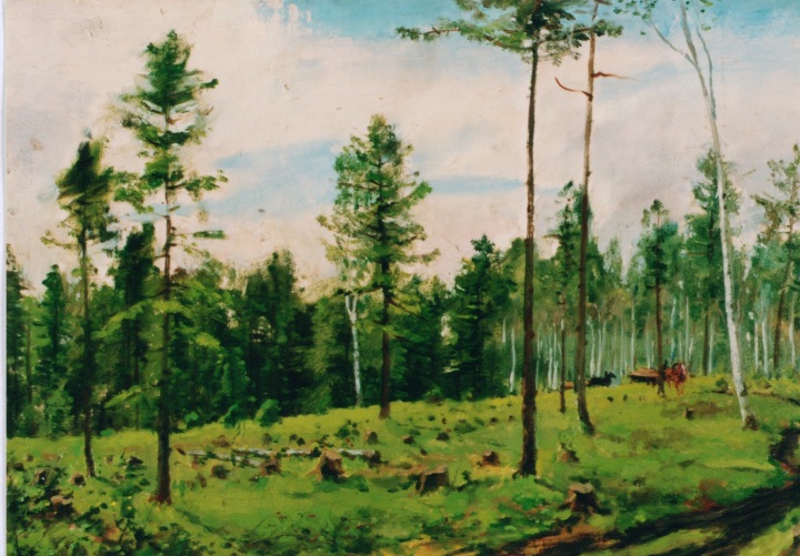 吴作人 采伐后(大兴安岭)油画26.5×40.5 1955年