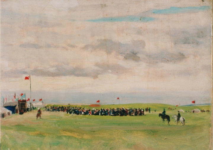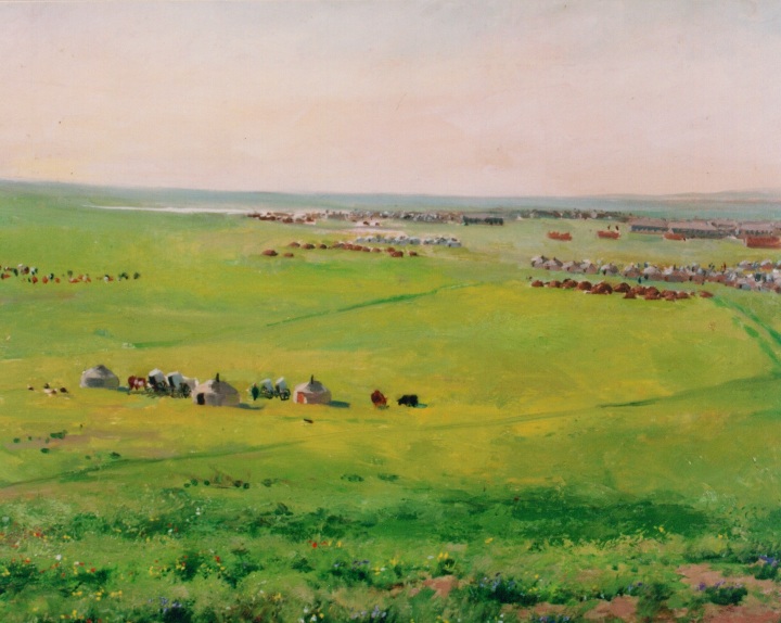 吴作人 草原小学(内蒙东新巴旗阿尔善小学)油画 40×53 1955年
