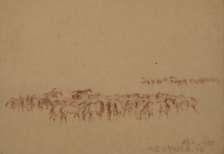 吴作人 内蒙大雁国营马场 速写 19×27.5 1955年