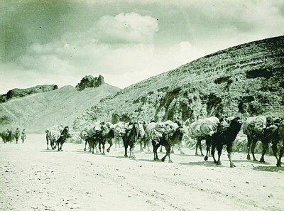 20世纪二三十年代,张库大道上驮着皮毛的骆驼队图片由张库大道博物馆刘振瑛提供