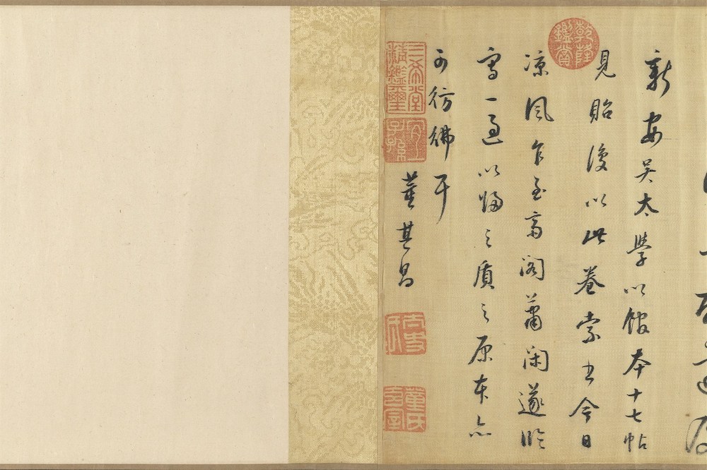 本卷未署年款,研究指出是《馀清斋法帖》彙刻〈十七帖〉的临本,时间在万历二十四年(1596)之后,书风飘逸秀润。据此可以理解明代末期〈十七帖〉流行的时代背景,以及董氏临古考据并重的书学态度。