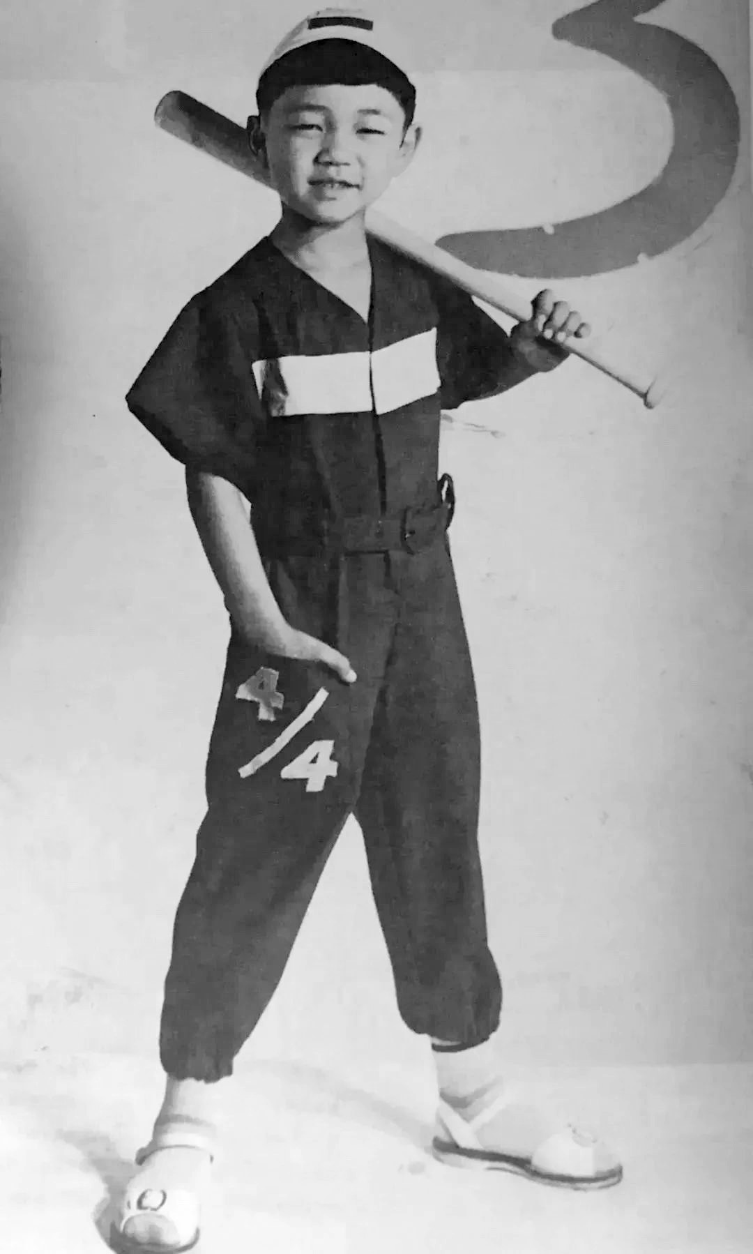1959年,7岁的坂本龙一在家和钢琴合影。