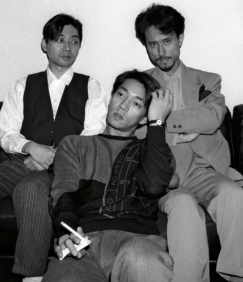 当地时间1983年10月13日,Y.M.O.(黄色魔法管弦乐队)成员细野晴臣、坂本龙一和高桥幸宏。