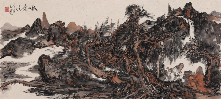 他悉心研究中国传统文化,体验自然风情,体悟绘画精神,体察造化之妙。他的山水画,畅达自然,有烟云流布的潇散;作品气息清幽,不拘地域之限,逸兴盎然,显现出当代视野的山水观。范扬的人物画既有饱蘸浓墨的乡土风情,也有墨彩并茂的高士与罗汉,其画风雅涵深美,清穆大气,洞达豁爽,质朴活脱,且不断地解构常规人物表现图式,延展了中国画的表现维度。等等这些已显现出范扬先生文化认知的高度与艺术创作的优秀品质。