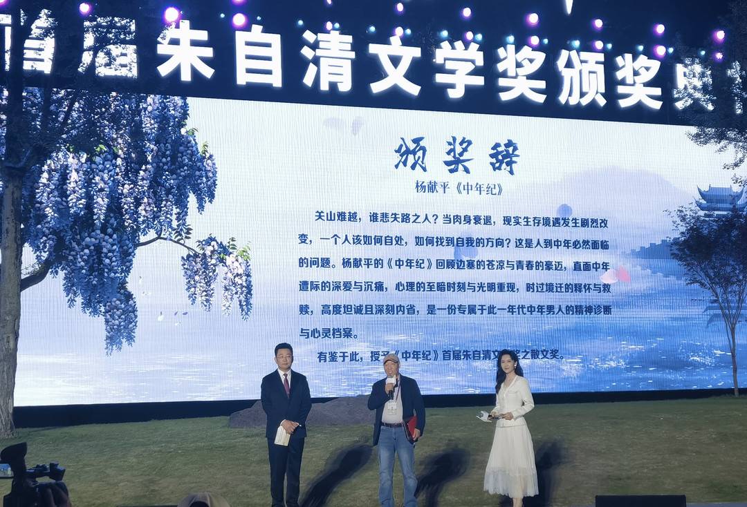 2023年4月10日,首届“朱自清文学奖”颁奖典礼在临海举行。现场颁出“首届朱自清小说奖”“首届朱自清散文奖”“首届朱自清诗歌奖”“首届朱自清紫藤新苗奖”。麦家、阿来、格非等知名作家出席颁奖礼,并为获奖者颁奖。来自四川的作家杨献平凭借作品《中年纪》,获得其中的“首届朱自清散文奖”。