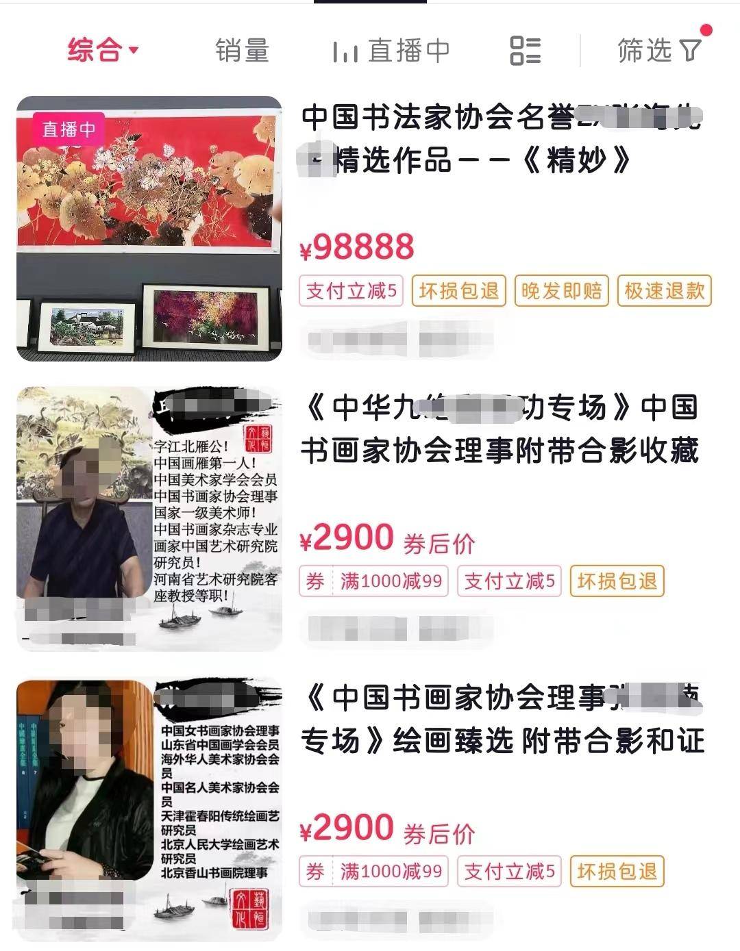 在直播间中,售卖书画作品是一个重要门类,消费者们购买书画作品,用于装点家居生活或馈赠亲友,为了吸引消费者下单购买,直播间里也是花样百出,除了主播卖力介绍字画特点外,还有不少直播间选择让画家、书法家直播作画,作品完成后即上架购物车售卖,主打“所见即所得”,这确实是令人心动的营销方式。但不少直播间在为字画作品推广时却动起了歪脑筋,直播间里挥毫泼墨的人在主播口中摇身一变全都是“大师”,头衔一串又一串,对书画行业了解不够深入的消费者能给忽悠得一愣又一愣的,其中山寨社团敛财问题尤为凸显。