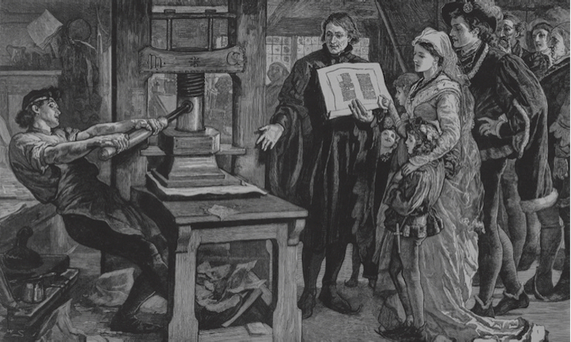 威廉·斯莫尔,《威廉·卡克斯顿向爱德华四世及王后展示凸版印刷机》,1877年