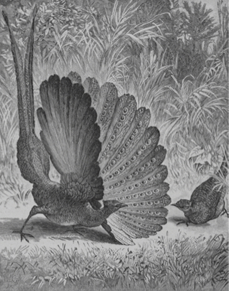 弗里德里希·威廉·库特纳(等),展翅中的大眼斑雉《皇家自然历史》插图,1896年