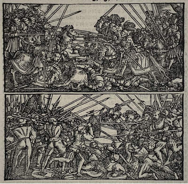 汉斯·布罗萨默,战斗中的罗马人《罗马史》(书籍插图),木刻,约1580年