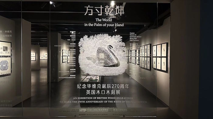 澎湃新闻了解到,此次展览展出约350件展品,展品分为五大部分:一,以丢勒作品为代表的欧洲早期木刻;二,毕维克木口木刻插图;三,十九世纪复制木口木刻;四,英国现当代木口木刻;五:木口木刻手工书、印版与工具。此外,展厅还放映了毕维克生平、他的木口木刻介绍与原版印制过程等影像。