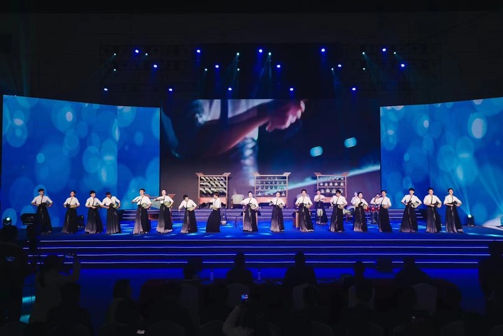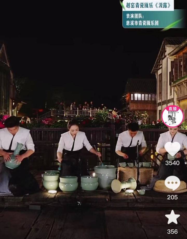 潮新闻记者了解到,这支来自浙江慈溪的青瓷瓯乐艺术团,数十位成员多是80后、90后的音乐人,曾代表浙江出访多个国家演出,演出用的都是碗、碟、盆、缸(盂)、花瓶(鼓)、编钟等青瓷器皿。