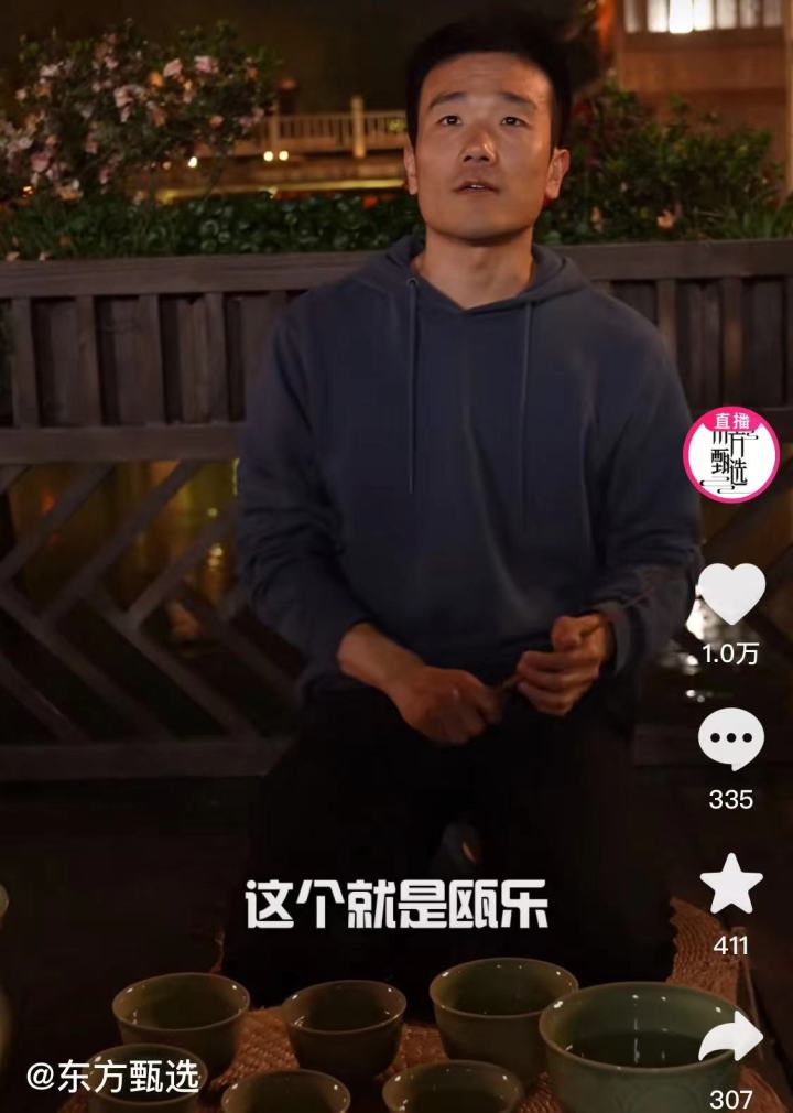 夜幕之中,被小伙的乐器和乐声吸引而来的,正是这两天在乌镇直播带货浙江好物的董宇辉等东方甄选的主播团队。
