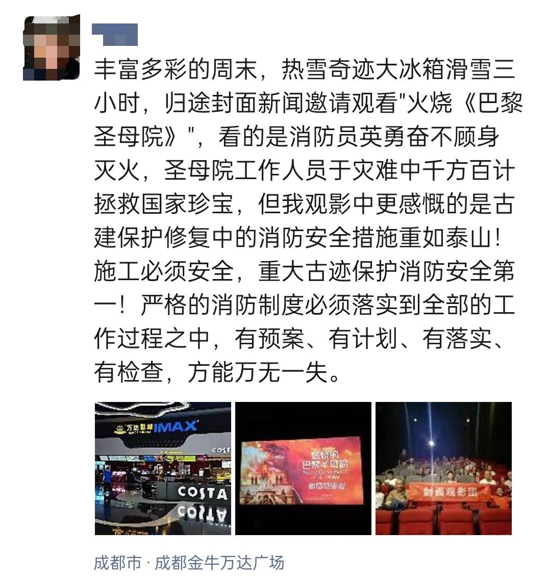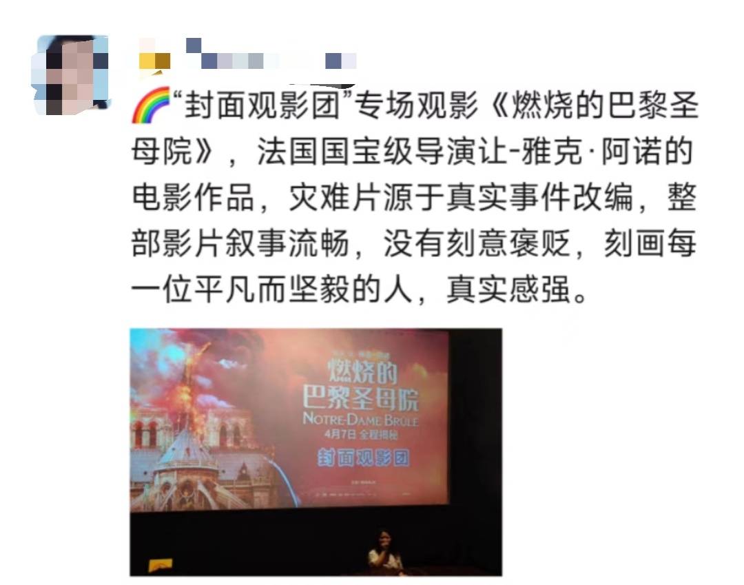 4月16日下午,封面观影团《燃烧的巴黎圣母院》专场在万达影城成都金牛万达店开启。电影放映后,观影团的影迷们纷纷在朋友圈和社交平台为该片点赞:细节丰富感受真实、被奋力逆行的消防员所震撼!