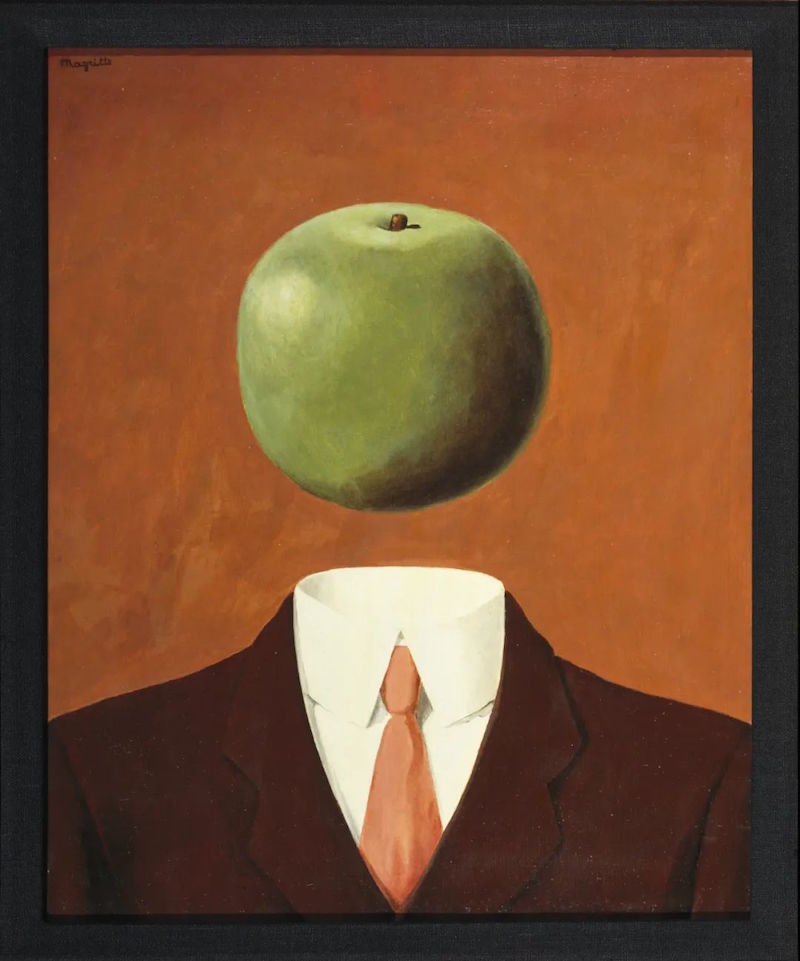 从“宫廷”到“人间”板块的艺术作品的时间跨度并不大,直到现代艺术出现后,艺术风格差距才会被拉开。展厅尾端的“幻境”板块,呈现了夏加尔、马格利特,契里柯等人的肖像画作。在这里,艺术家是造梦者、预言者以及对结合现实场景并着眼无限可能的重构者,他们的作品打破了时空的限制,带领观众畅想奇幻的领域。