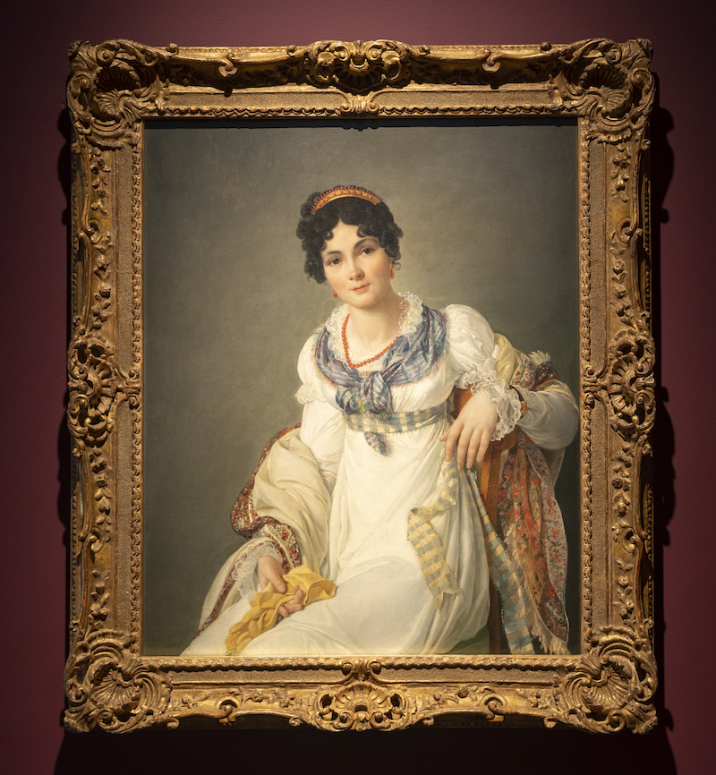 如果说,文艺复兴在很大程度上依然是在讲述思想的故事与信仰的力量,而巴洛克风格的出现则开始在创作手法与表述形式上开启了一种颠覆性的新趋势。而到了18世纪,极尽奢华与细致的洛可可风格则与之前的艺术形成了对比。让·马克·纳蒂埃是18世纪路易十五世统治下的法国最成功的肖像画家之一,他的肖像画在当时作为一种时尚而广受贵夫人们的欢迎,作品造型写实而细腻,绘画样式丰满华美。展厅中,观众可以看到纳蒂埃的作品《安博堡侯爵夫人肖像》,画中她身着华丽丝绸礼服裙,面色红润,双眼炯炯有神地目视前方。侯爵夫人身后飘动着蓝色的帷布又让她仿佛置身在一个舞台上。