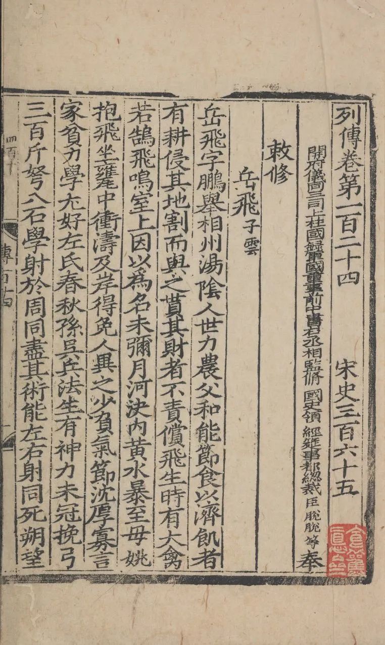 《宋史岳飞传》一卷,据元至正六年本翻刻。《岳忠武庙名贤诗》一卷,共收录宋、元两代77人游览岳庙后的怀古题咏之作,以及与兴修岳庙相关的文章。卷末有刊记一行。此本非一时所刻,经释高会的增补和修版,印刷时间当在明代。刘启瑞旧藏。入选第二批《国家珍贵古籍名录》(02854)、第一批《上海市珍贵古籍名录》。