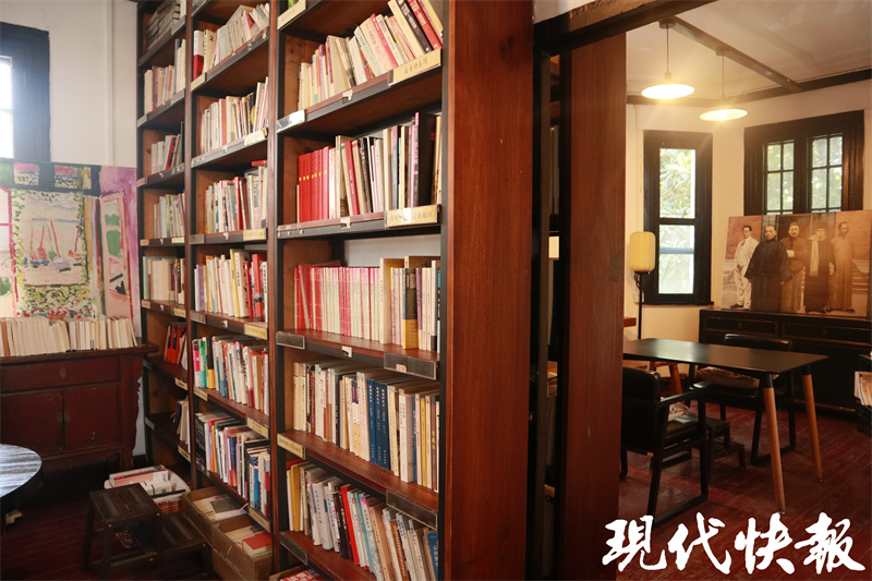 在热闹繁华的新街口,还有一处清幽之地。二楼南书房位于南京市秦淮区秣陵路的一栋民国建筑里,沿着古朴的台阶走上去,走进这个50平方米的书房,仿佛穿越时空,回到了民国。房间内,桌椅、地板、书架和窗棂都是深色木质的,书架上整齐的摆放了一排排书,纸香悠悠,营造出一种沉静的阅读氛围。二楼还有一个面积不大的露天小阳台,清风习习,坐在这里看书也十分惬意。