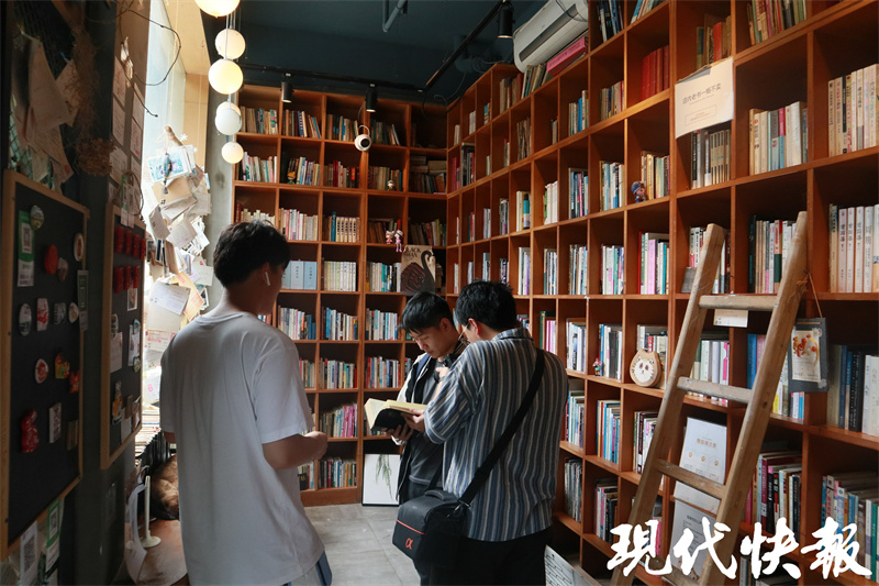 走进小院,还有两只柴犬和三只猫咪欢迎顾客的到来。店里放着舒缓轻柔的音乐,整个空间让人觉得温馨、舒适、安全,可以坐下来好好读一会儿书。午后,店内有三两年轻人在看书,90后的店主王爽在为顾客制作咖啡。“2022年8月刚开业,我们的顾客以年轻人为主,不少都是南农的学生,我们定期还会举办阅读会、观影会、音乐会之类的活动。”