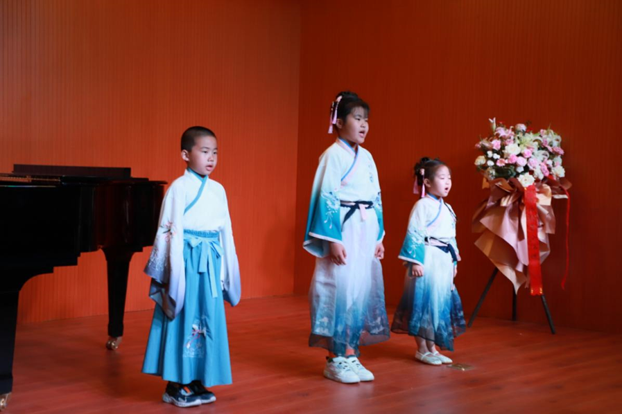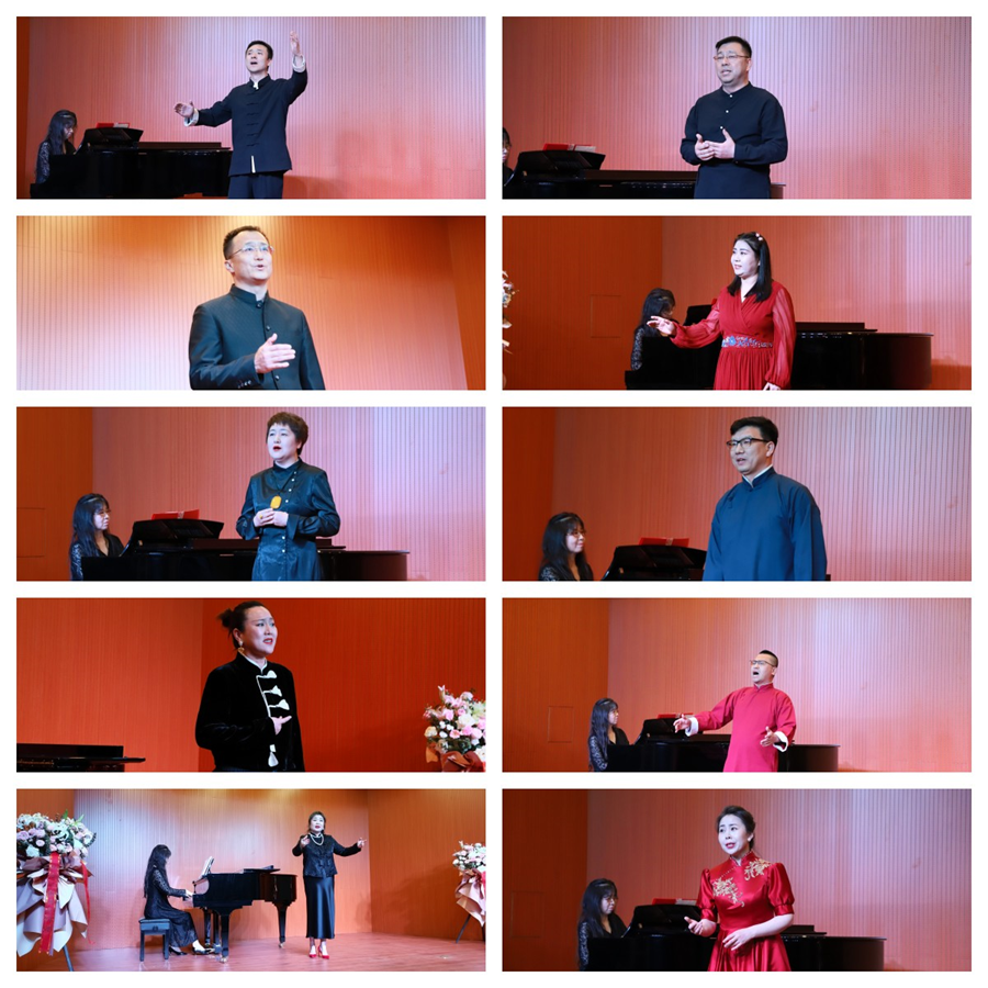14位吟诵者吟唱《诗经·采薇》的“昔我往矣,杨柳依依”,李白的“举头望明月,低头思故乡”,高适的“莫愁前路无知己,天下谁人不识君”,辛弃疾的“稻花香里说丰年,听取蛙声一片”……师生在23首古诗词的吟诵中穿越时空,与圣贤对话,感受他们的喜怒哀乐。项目组负责人王浩东老师吟诵的自创绝句《望远》和《春雪》,亦充分展示了古诗词普通话吟诵的艺术魅力。项目组从技巧研究的角度,结合专业优势,把音乐创作和声乐唱法融入到诗词吟诵中,形成了自己独特的吟诵及吟诵调创作风格,初步形成了古诗词普通话吟诵唱法。为了达到更好的传播效果,贴近现代人的审美,项目组大胆尝试用钢琴伴奏。本次活动中,钢琴伴奏由师范部胡雪梅老师担任。