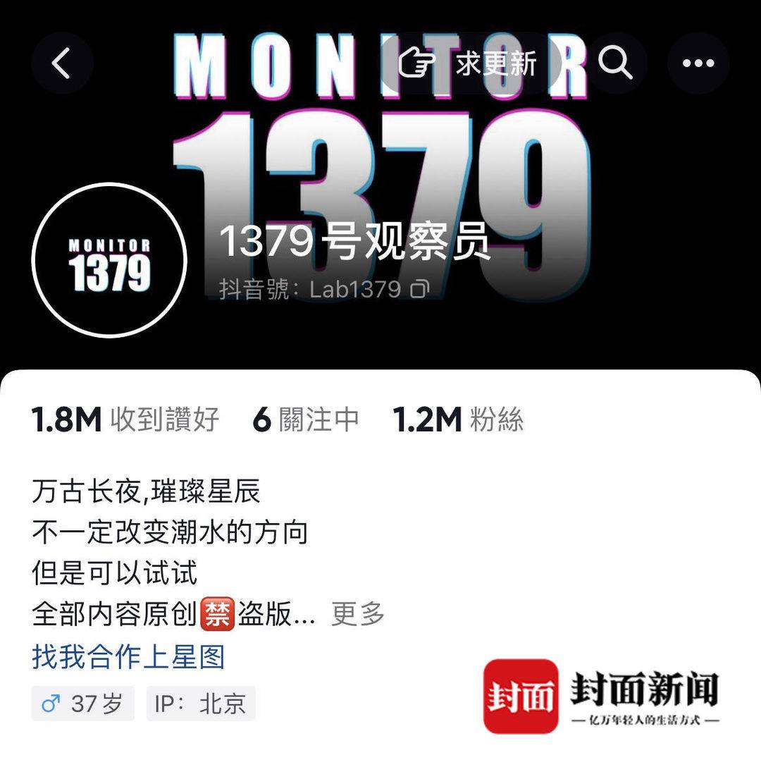 “1379号观察员”本名李燕飞,这组视频的画图、配音、文案、视频制作等工作,皆是由他一人完成的。迄今为止,他已积攒了120万粉丝。