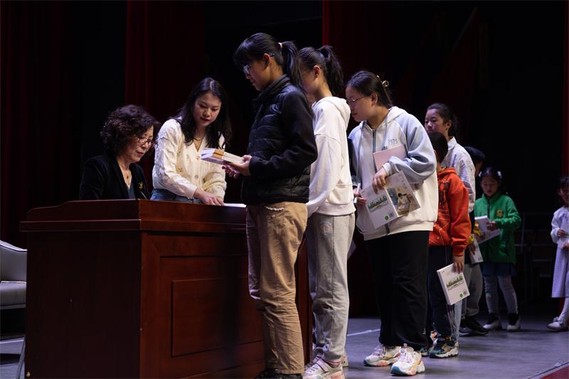 活动最后,黄蓓佳进行新书签名。拿到签名的大朋友、小朋友都非常开心,纷纷表示这将成为自己阅读的动力。(栖霞区供图)