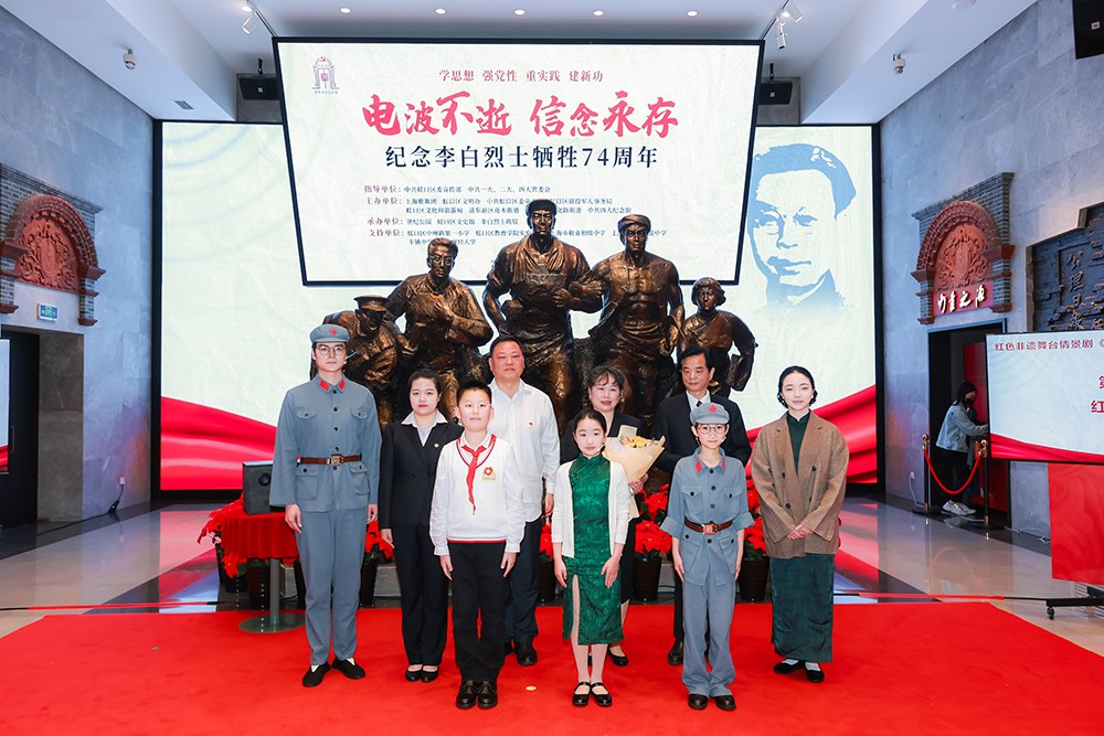 青年演员和“小红花”少年共同演绎了红色非遗舞台情景剧《电波中永生》。