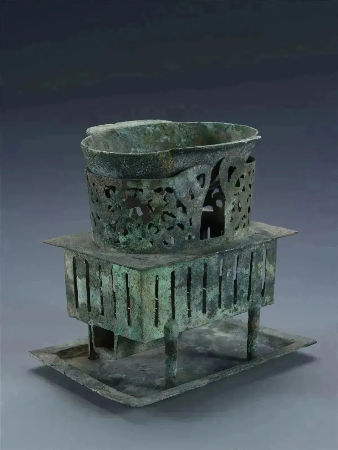 除了烧烤,汉代先民也已经吃火锅了。这件铜染炉就是古人吃火锅时所用到的器具。