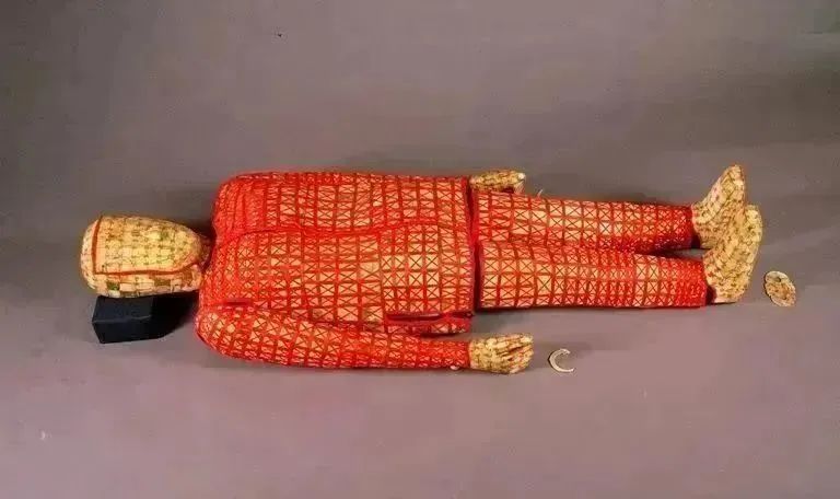 它的上衣采用的是对襟形式,好比我们现在常穿的衬衫,这种形式也是以前在文献和考古发掘中从来没有见过的新类型。这是我国迄今为止所见年代较早的一套完整玉衣,也是唯一一套形制完备的丝缕玉衣。