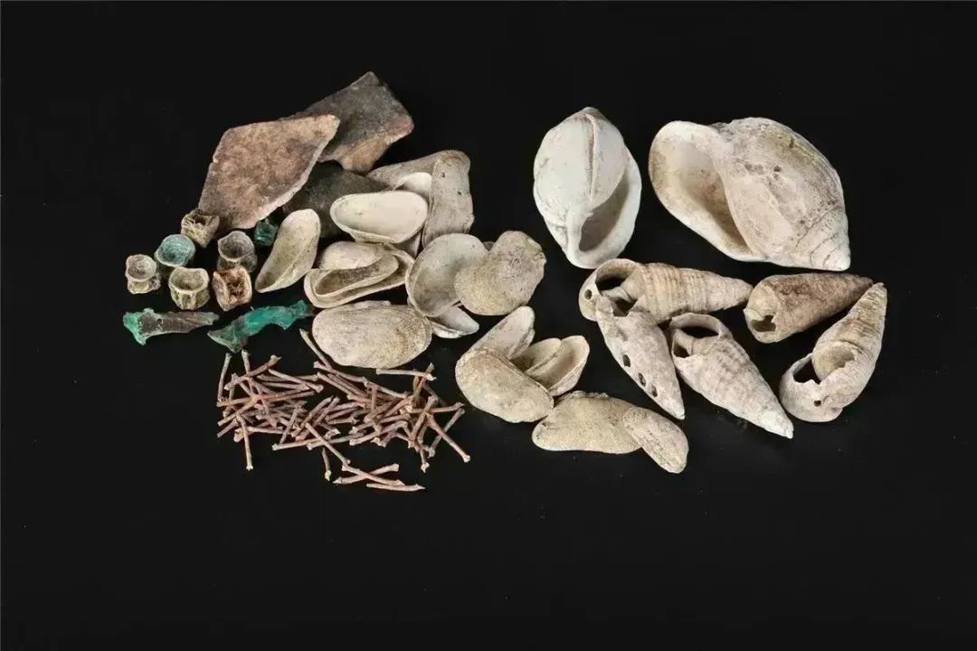 耳状耳螺、沟纹笋光螺、青蚶、鱼骨、龟甲、禾花雀西汉南越国时期1983年南越文王墓出土南越王博物院藏