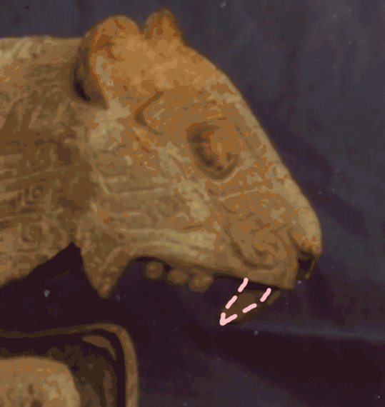 △文保人员考虑到文物的真实性和文物价值,在修复过程中保留了缺失獠牙的形态