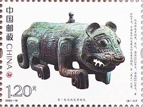 △以“伏鸟双尾青铜虎”为图样发行的邮票