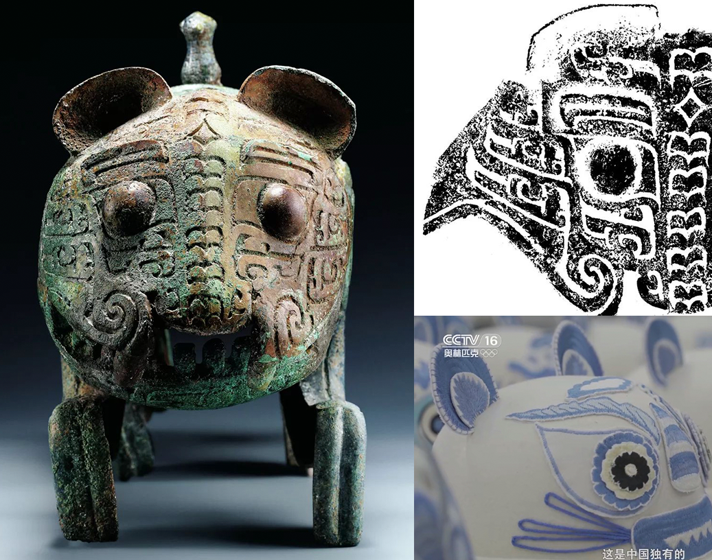 △伏鸟双尾青铜虎与北京冬奥会开幕式引导员的虎头帽“梦幻联动”