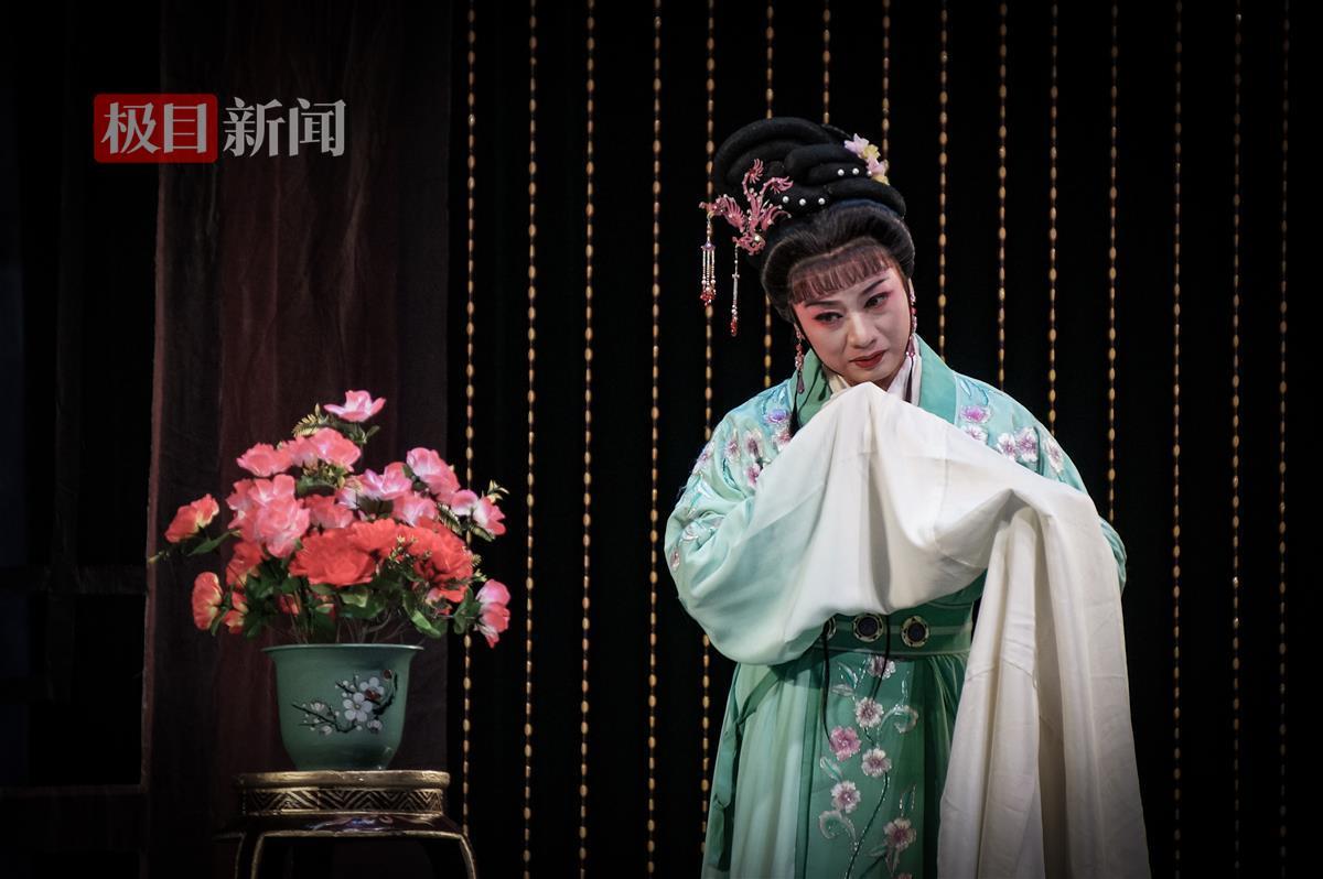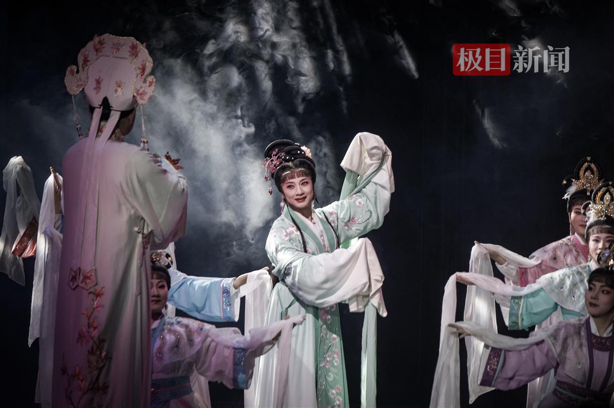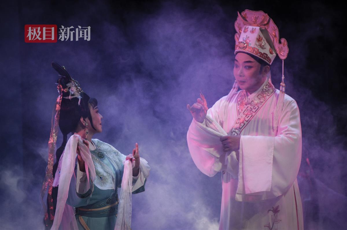 “重门深锁幕帘垂,画堂春晓燕双飞……”17日晚的演出现场,幕帘轻启,女声的轻轻吟唱间将欲说还休的少女情结娓娓道出,舞台上红叶旖旎灯光旋转,勾勒出优雅动人的氛围。演出过程中,两位梅花奖得主符传杰、林川媚凭借明朗动人的唱腔、富有张力的念白、细腻连贯的形体表演,成功塑造出男女主人公的形象,“日丽风和艳阳天”“湖畔挑灯夜读书”“姜家世妹美如玉”“遇文哥哥在寿堂”等唱段,赢得观众经久不息的掌声。