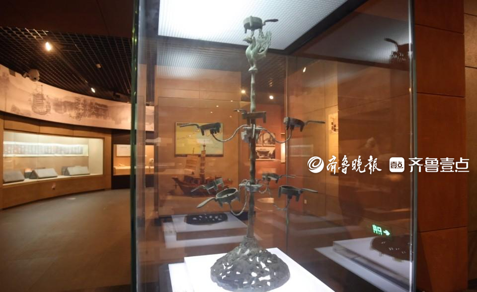 此灯工艺复杂,造型精美,与三星堆出土的“神树”非常相似,通过此灯,可以感受汉代烟台地区手工业的繁荣。