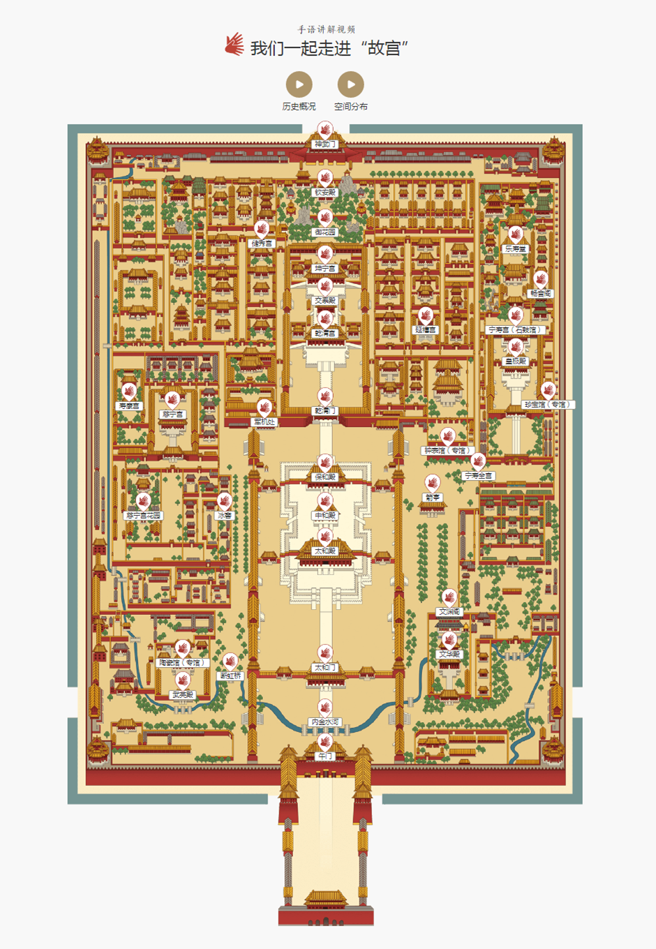 故宫博物院与北京手语研究会联合推出的数字化手语导览项目,当天正式在故宫博物院网站上线。手语讲解服务专题页面中,呈现了故宫博物院手语导览地图及50个讲解视频,内容涵盖30个建筑空间以及陶瓷馆、钟表馆和珍宝馆共3个常设展馆内的15件文物藏品。聋人观众也可在实地参观的过程中,线下扫码观看手语讲解视频。