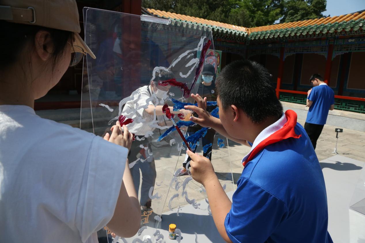 18日当天,故宫博物院还特别策划了一场“以手画眼”绘画工作坊。10名来自北京市盲人学校的视障学生,在北京通州区乐益融社会工作事务所邀请的专业老师和志愿者的带领协助下,以双手触摸感受在画板上提前塑造的图形肌理,展开想象进行绘画创作。