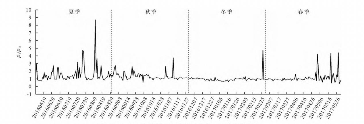 第100窟,2016-2017年窟内和窟区PM10的ρI/ρO值年变化表现图源:徐瑞红2022