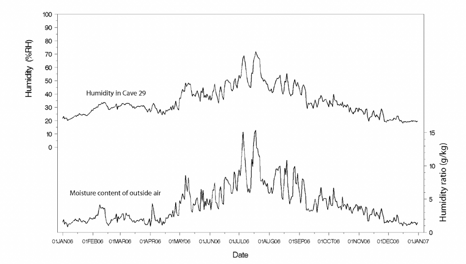 2006年29窟外部适度对窟内微环境的影响情况图源:Demas等2015