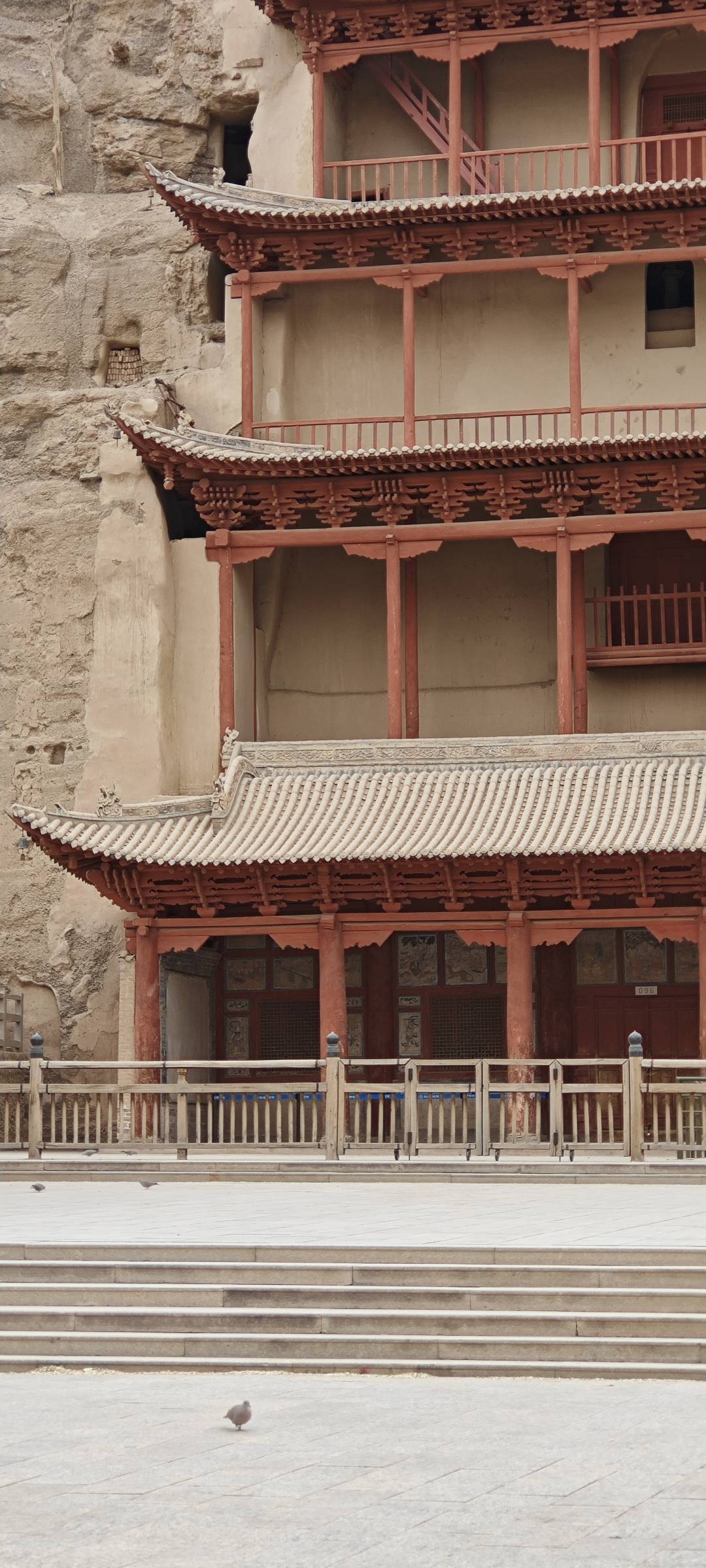 5月3日下午6点,五一假期结束,接待了约4.5万人的莫高窟九层楼广场,一尘不染,恢复了往日的宁静。灰鸽子享受着这份独有的安逸。