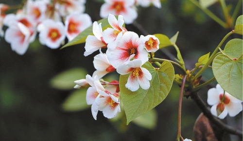 人间四月芳菲尽,深山桐花静静开。桐花瓣白蕊红,状如喇叭,若情窦初开。和桃花相比,桐花红中杂白,俏不争春;和樱花相比,桐花硕大奔放,震撼人心。花开灿烂,满岭桐花如雪似玉,层层堆叠。花落缤纷,落花如流水,铺地似花茵。随着阵阵山风拂过,那一簇簇、一串串白色的桐花,像小喇叭一般,似乎在欢送春天离去,迎接夏天的到来。桐花散发出的独特花香,清爽而幽长,引来无数蜂舞蝶狂。