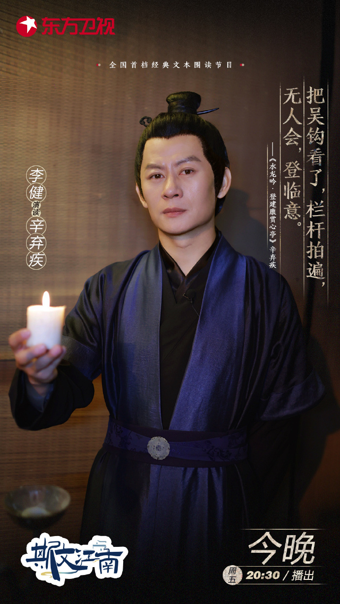 “李健很喜欢这个人物,辛弃疾本身就是‘六边形战士’,存世有600多首词,有杀贼寇的一个经历,一辈子想要光复河山,却一生都在文职的工作上调动来调动去,不能成为一个真正的带兵打仗的将领,是他一生的不甘和遗憾。李健形象气质上很贴,穿上盔甲很有‘山东老兵’的味道。”执行制片人汪甜盈补充说道。