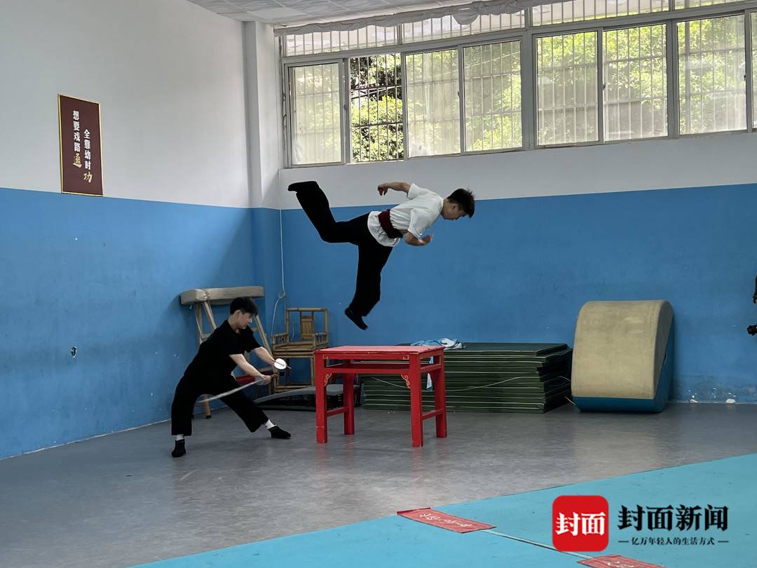 在这里,不难看到练功的学生,其中,他们有在室内的,也有在室外的。记者获悉,学院里本有舞台,但因久未得到修缮,已经“荒废”几年了。负责人说:“因这里教学条件有限,学生有练功和登台需求时,只能去几十公里外的温江校区。”