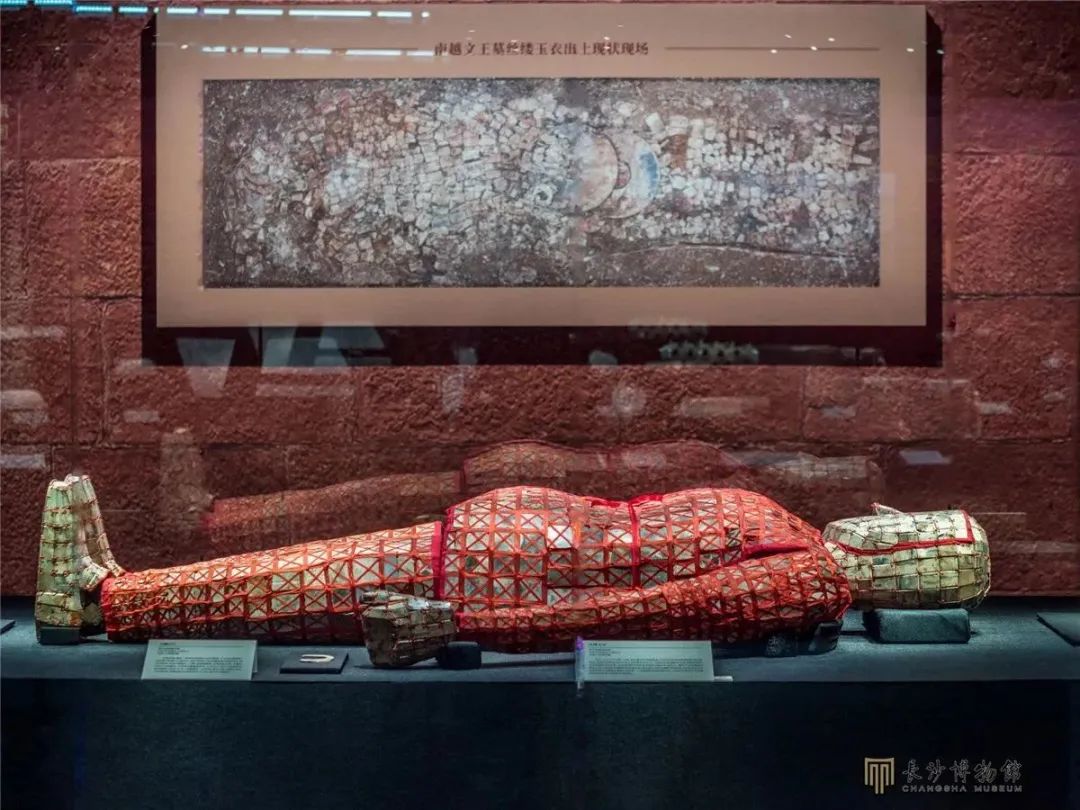 本次展览中最重磅的明星展品——丝缕玉衣长1.73米,共使用2291块玉片。因年代久远且墓室多次进水,在出土时玉衣的丝线已经基本腐朽,玉片散落一地。考古工作人员使用石膏将玉衣整体打包运送至北京社科院,专家们共花费3年时间才修复完毕。
