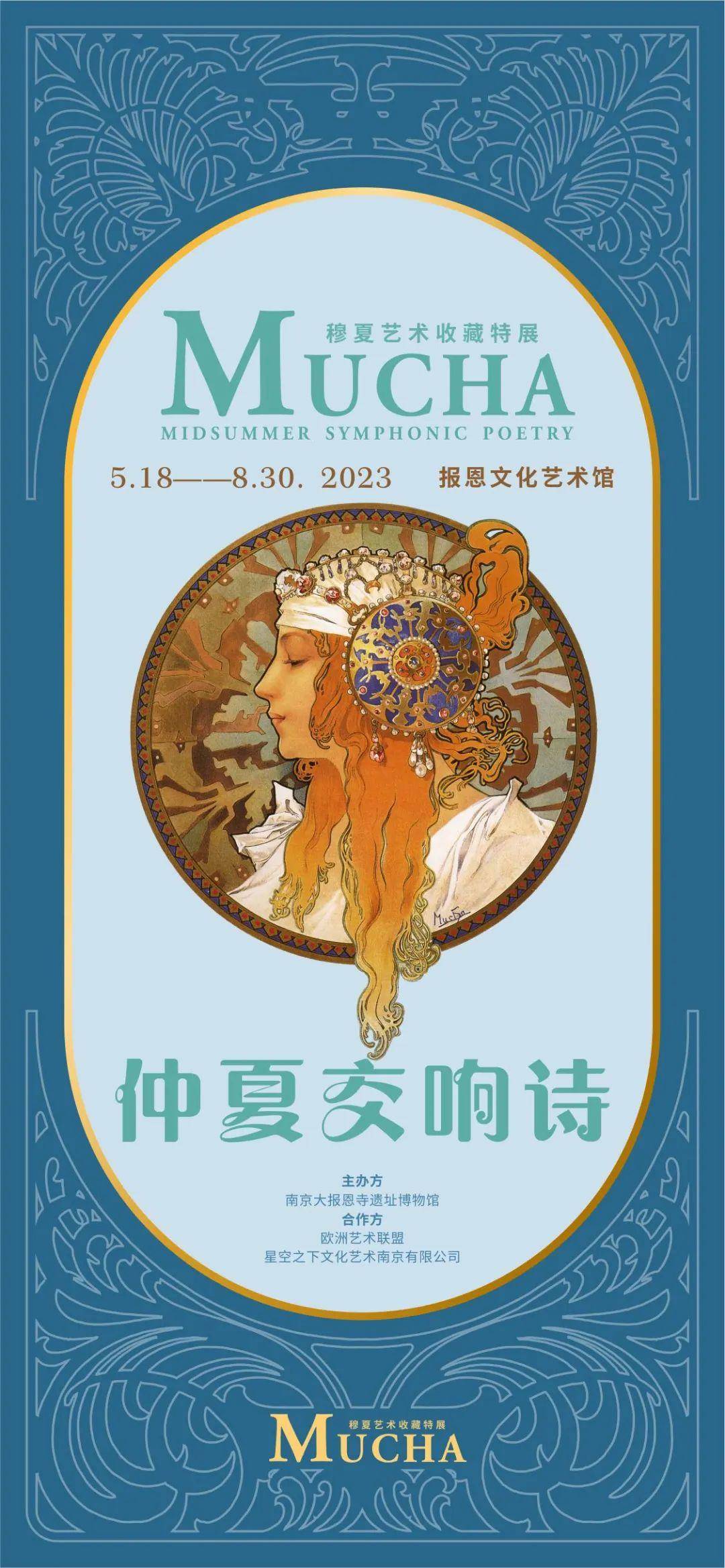 5月18日,南京大报恩寺遗址博物馆联合欧洲艺术联盟举办“仲夏交响诗——穆夏艺术收藏特展”,共计展出5幅原作手稿、49幅版画以及海报、邮票、出版刊物等百余件展品。
